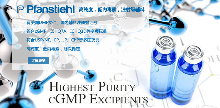 “熱烈祝賀Pfanstiehl的注射級甘氨酸Glycine(G-140)喜獲CDE登記號F20250000403, 這是Pfanstiehl產品獲得的第18個CDE登記號!”甘氨酸在醫藥輔料制劑中應用廣泛,, 可作為緩沖劑,增溶劑,穩定劑等,具有諸多優勢。Pfanstiehl秉承一貫高品質理念,為滿足全球生物制藥行業對于高品質甘氨酸的需求,隆重推出的注射級甘氨酸Glycine (G-140), 具有超高純度,超低內毒素,超低金屬殘留的特點,單獨檢測29種金屬離子,并且新增DNA,RNA,DNA酶,RNA酶和脂肪酶,亞硝酸鹽等多項質量指標的檢測,符合多國藥典規定(USP, EP, BP, JPE, ChP),可用于生物治療性藥物和疫苗的生產。產品信息:· 產品名稱:Glycine, High Purity, Low Endotoxin, Low Metals, USP, EP, BP, JPE, ChP (G-140)· 中文名稱:甘氨酸· 分子式:C2H5NO2· 分子量:75.07 g / mol· CAS號:56-40-6· 產品貨號:G-140產品特點: · 超高純度,超低內毒素,超低微生物含量,超低金屬雜質殘留· 質量指標新增DNA,RNA,DNA酶,RNA酶,脂肪酶和亞硝酸鹽檢測· 符合多國藥典:USP, EP, BP, JPE, ChP· 符合ICH Q3D標準· 符合GMP標準· 已獲DMF和CDE登記號 產品應用:· 緩沖劑· 穩定劑· 增溶劑如果您對Pfanstiehl注射級別Glycine G-140感興趣,歡迎聯系Pfanstiehl 中國區代理商北京西美杰科技有限公司獲得如下詳細的產品概況說明文件和測試樣品。Pfanstiehl Inc.最新產品系列如下,歡迎聯系北京西美杰科技有限公司獲取100g裝免費樣品。北京西美杰科技有限公司為Pfanstiehl中國代理,為客戶提供完善的技術支持與售后服務。歡迎撥打西美杰客服電話400-050-4006或者登陸網站www_xmjsci_com.hwsou.com了解更多信息。 更多>